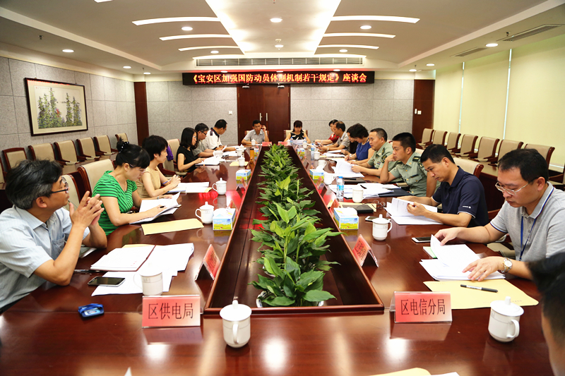 宝安国防网讯(宝安日报记者 何冬英)6月19日上午,宝安区国防动员委员会召开《宝安区加强国防动员体制机制若干规定》座谈会,区委常委、区人武部部长李金宇,区国防动员委员会成员单位负责人参加座谈。