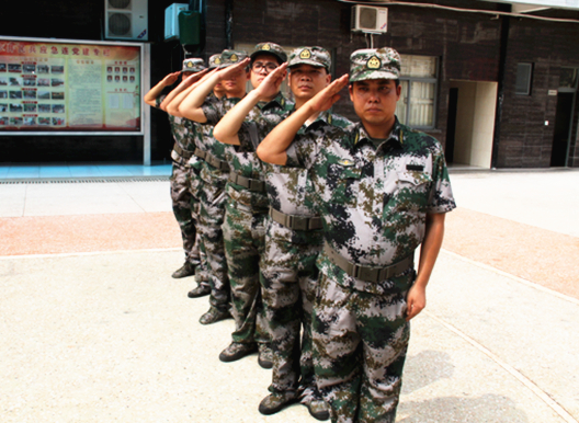 “立正,稍息,向右看齐……”刚进军营,就听到一连串整齐而响亮的口令声,民兵们正在进行日常的军事训练。