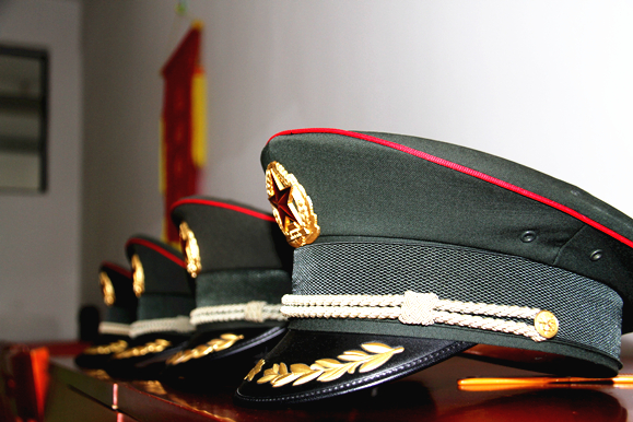 经过民兵宿舍,还是忍不住停下脚步:台桌上,军帽上的国徽熠熠生辉。
