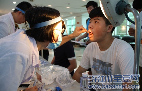 医护人员对参加体检初检的应征青年进行常规检查