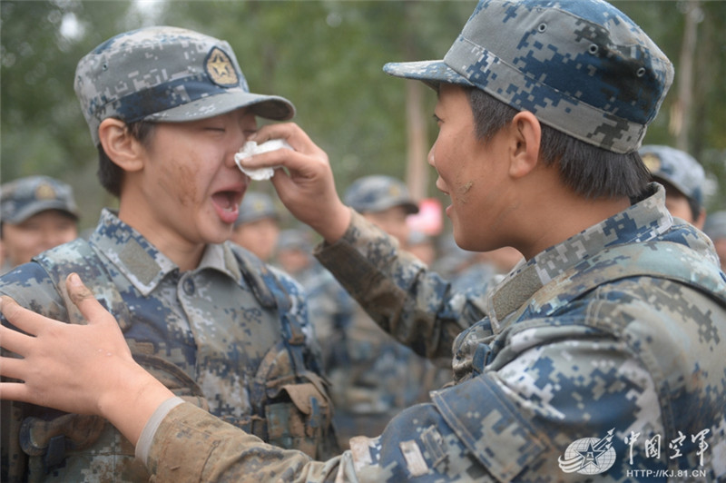 10月21日,野外训练的第2天,一场秋雨不期而至,野外训练场经过雨水浸泡后一片泥泞。新训骨干们不忧反喜:“这雨来得好!”负重徒步行军,38岁的新兵二营教导员冯磊手持营旗冲在最前面;单兵战术训练,女新兵连代理连长、士官张晓婷卧倒在泥水中,穿越障碍、匍匐前进,作训服转眼挂上了半斤黄泥;一招制敌训练,为更好地示范和施展拳脚,新兵14连士官长朱良奎不顾秋寒脱掉毛衣,冒雨给新兵一遍遍进行动作示范……