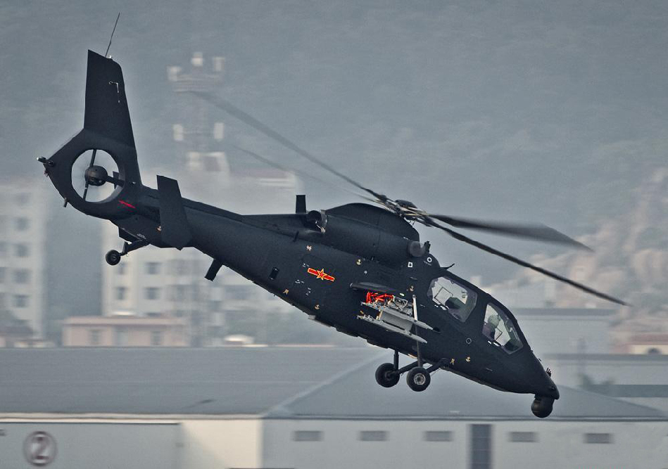武直-10直升机装备23mm单管机炮,配有两个武器挂载短翼,每个短翼下方有两个挂载点,可加挂四联装HJ-10反坦克导弹发射器、四联装TY-90空空导弹、HJ-8反坦克导弹发射器、32联装火箭发射器等。