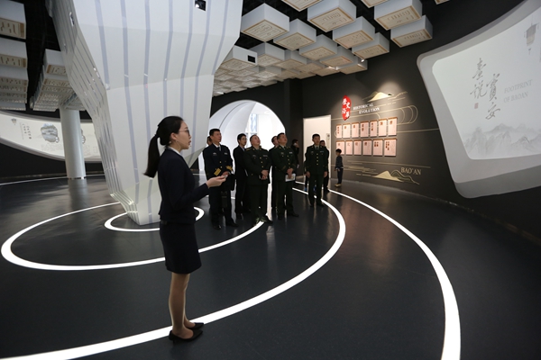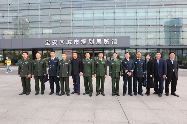 座谈会结束后,与会部队代表集体参观了宝安区规划展览馆。在城市规划馆里,驻区部队代表通过图文展板、数字CG影像长卷、曲球面LED屏等方式,全方位了解宝安区历史、人文和建设成就,直观地呈现出宝安未来规划发展蓝图。