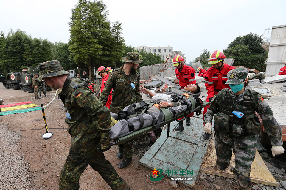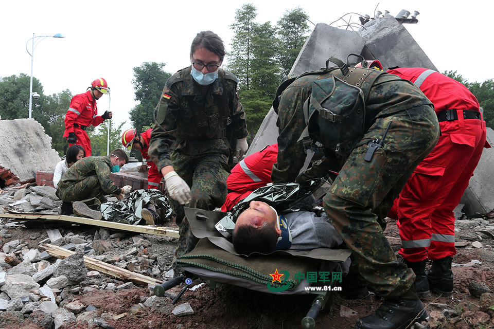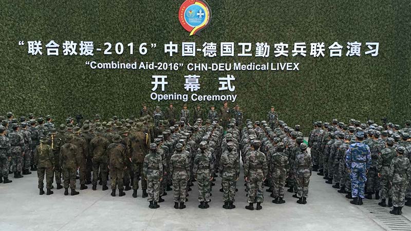 演习导调人员向中德联合医疗队指挥组发出随机导调指令。中国军网记者 李三红 摄