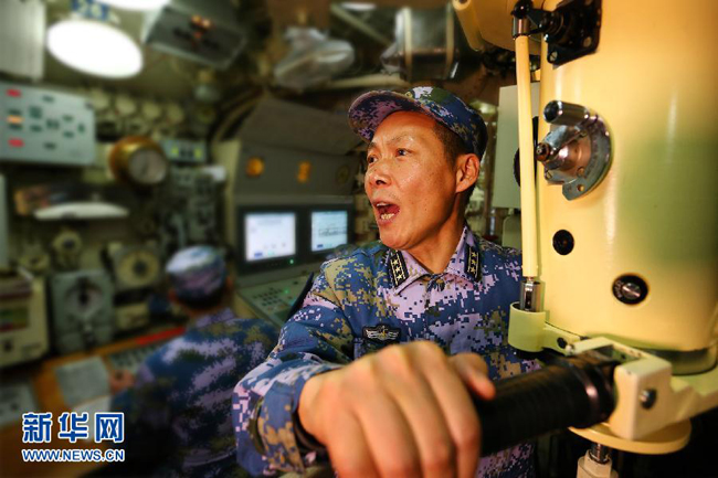 这是华明在指挥潜艇急速下潜。深海,黝黑如墨,海军东海舰队某型潜艇正低速前行。艇长华明镇定从容地下达指令:“准备导弹攻击!”“预备,放!” 随着艇体的微微一颤,导弹带着熊熊火焰破水而出,冲向海天,准确击中目标。任艇长6年来,华明已先后率艇试射多型雷弹,出色完成远航战巡、战备值班、中外军演等10多项重大任务,被表彰为“全军学习成才标兵”“海军十大杰出青年”。新华社发( 琚振华摄)