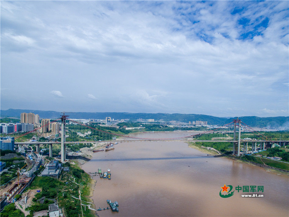 这是拍摄于2016年7月6日的寸滩长江大桥建设现场。2012年底开工建设的寸滩长江大桥,连接起重庆南岸弹子石和江北两路寸滩保税港区。大桥全长1520米, 主桥主跨880米,双向八车道设计。南北桥塔分别高194.5米和199.5米,是重庆目前最高的桥塔。寸滩长江大桥建成后向北可延伸至重庆江北国际机场,向南延伸至南岸茶园,串联机场专用快速路,是由主城直达重庆江北国际机场T3航站楼的机场专用快速路的重要节点工程。李相博摄影