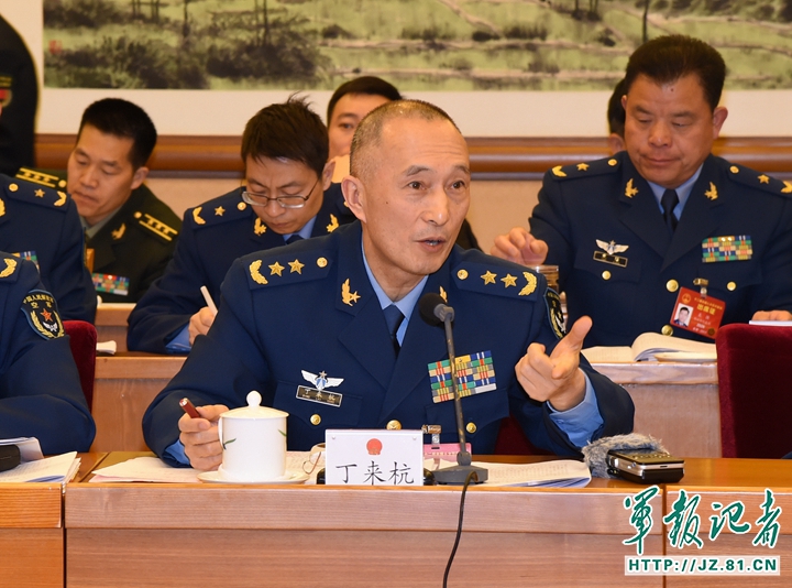 3月5日,在解放军代表团小组审议政府工作报告时,军队人大代表丁来杭积极发言。记者冯凯旋 摄