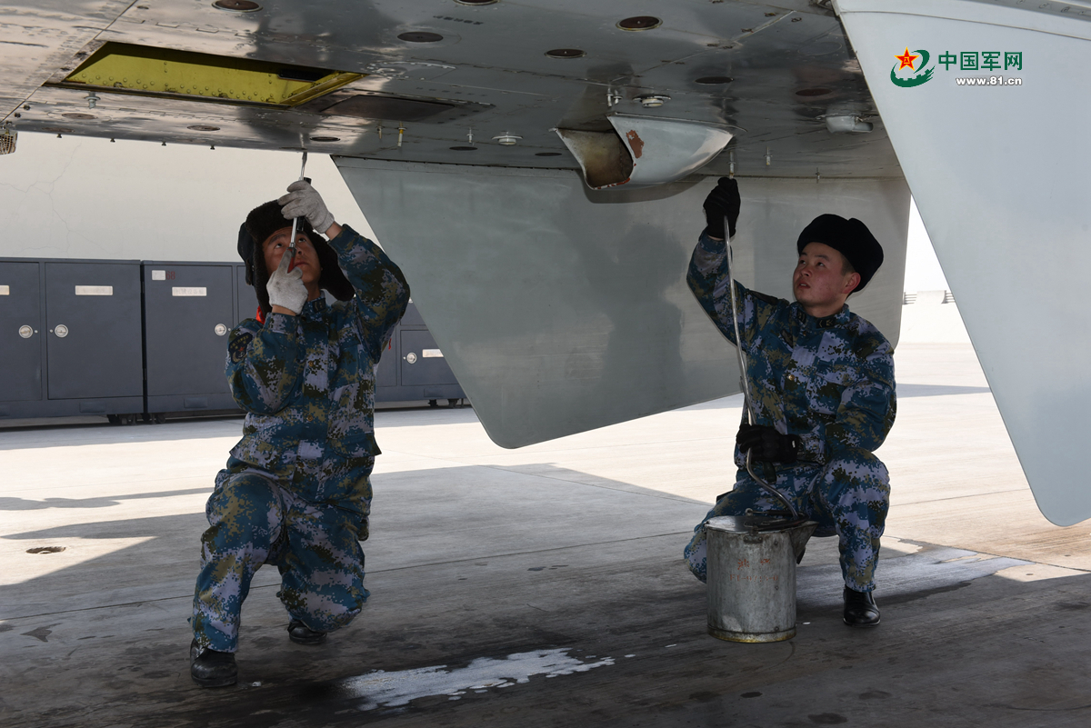 机务官兵检查水泥弹安装情况。刘率帅 摄