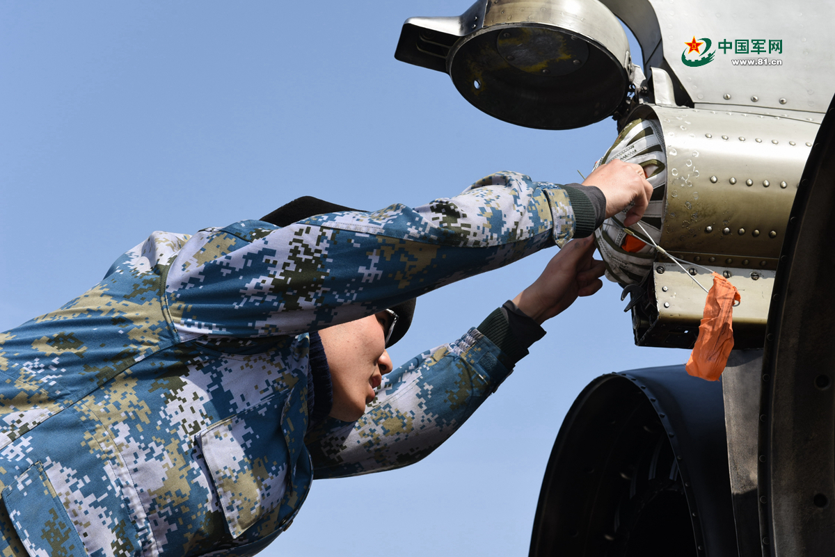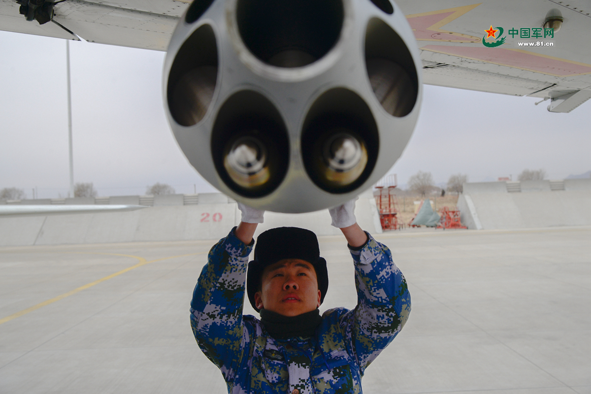 机务官兵检查火箭弹安装情况。刘率帅 摄