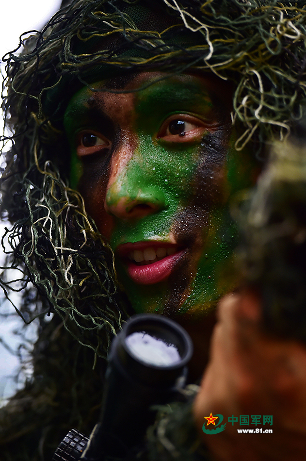 武警广东省边防总队机动支队官兵。这支队伍驻守在粤港边海防一线,作为一支快速反应部队,足迹遍布全国,担负处突维稳、缉私缉毒、救援抢险等重大机动任务。“浓妆”之下,我们看到的是战士闪闪发亮的眼睛。廖键摄