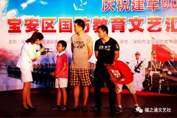 国无防不立,民无防不安。作为“宝安区2016年度全民国防教育先进单位”(宝安、龙华和光明新区仅仅有5家单位获此殊荣哦)的福之涌文艺社,2017年6月3日傍晚走进福海街道立新湖两岸文创梦幻公园,为800多名观众带来了国防教育文艺汇演,让市民朋友感受浓浓的爱国情,了解国防教育尤其是征兵宣传知识。